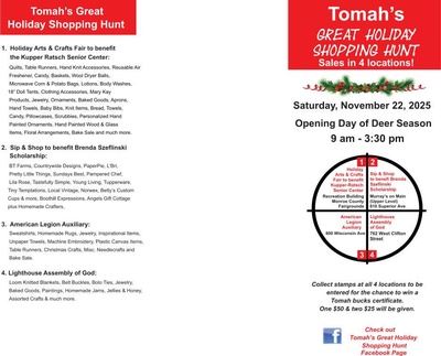 For more information, follow “Tomah’s Great Holiday Shopping Hunt” on Facebook.