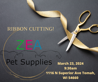 You are invited to attend the traditional ribbon cutting on Saturday, March 23rd at 9:30am, located at 1116 N. Superior Ave., Tomah, WI. Come tour the their new space, shop their inventory of quality pet food, treats, toys, and more, enjoy refreshments and cookies, sign-up for the gift card drawing, and receive special discounts.